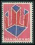 1969. 60 øre blå/rød med variant: Lang rød streg gennem Danmark. AFA 450,-