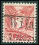 1936. Landskab, 20 Centimes, rød. Variant: dobbeltpræget højre randlinie. Annulleret Wila 7.VI.37. Zumstein nr. 205z.2.08: 150 CHF. Attest Kurt Loertscher SBPV (2007).