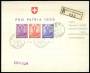 1937. Pro Juventute, miniark med flere. Rekommanderet brev sendt fra SCHAFFHAUSEN 29.III.38 til Vysoké Mýto i Tjekkoslovakiet. Transitstemplet PRAHA 30.III.38 og ankomststemplet VYSOKÉ MÝTO 30.III.38....