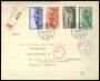 1944. Pro Patria, komplet sæt. Rekommanderet brev sendt fra LA TOUR-DE-PEILZ 26.VI.44 til København i Danmark. Passeret censuren. Bagklap mangler.