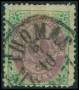 1873. 1 c. grøn/lilla tryk 1, minus takker. AFA 1800,-