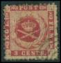 1866. 3 c. karmin med delvis privat gennemstik.