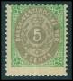 1876. 5 c. grøn/grå med omv. vm. AFA 1000,-