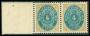 1873. Tofarvet, 4 Cents, 3. Tryk, Position 51-52 (parstykke med marginal). Tête-Bêche par med omvendt og ret ramme.