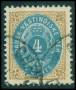 1902. 4 c. gulbrun/blå omv. ramme. AFA 800,-