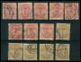 1902. 2/3 c. blå/rød i 50-blok inkl. ret rm. der er hængslet samt andre varianter, ialt 8 hængslet. AFA 7560,-
