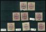 1895. 10/50 c. violet x 8 i blandet kvalitet, den øverste sidder fast på papir.