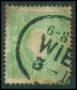 1858. 3 kr. grøn nusset. AFA 1500,-