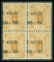 TJENESTE. 1902. 3 aur gul I GILDI i 4-blok med forskudt overtryk.