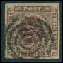 1852. 4 RBS rødbrun med ST i Post sammenhængende. Sign. Wahl.