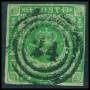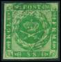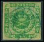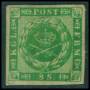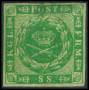1858. 8 sk. grøn, let beklippet i venstre side. AFA 6200,-