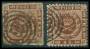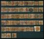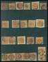 1858. 4 sk. brun x 23 inkl. flere par og 3-stribe i blandet kvalitet.