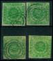 1858. 8 sk. grøn x 4 i blandet kvalitet. AFA 4800,-