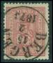 1867. 8 sk. karminrosa; 3 mærker (venstre mærke med korte takker i S).