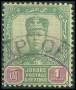 JAHORE. 1910-19. 1 $ grøn/lilla. SG 130 £