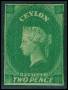 CEYLON. 1857. 2 d. gulgrøn. Sign. SG. 500 £