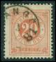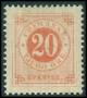 1877. 20 øre orangerød med sten over E i Sverige.
