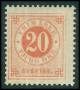 1877. 20 øre orangerød, lidt sorte pletter på forsiden. AFA 1800,-