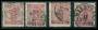 1858. 50 øre våben x 4 inkl. mørkkarmin med manglende takker. AFA 3100,-