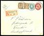 1934. Gebyrmærker. 10 Øre, brun (par) på rekommanderet brev indleveret på København 21, Hovedbanegården. Sendt 9.8.1931 til Tønder.