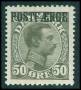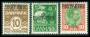 1922. 10 øre grøn, 50 øre grå og 1 kr. brun/blå; 4 af hver. AFA 2560,-