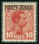 1919. 15 øre matlilla med kryllet TF i overtryk.