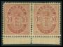 1884. 10 øre rød i par med store og små hjørnetal, småtal med kort tak i nord. AFA 5000,-