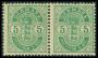 1882. 5 øre grøn i par med variant: Skarpt bøjet fane på højre 5-tal. AFA 3150,-