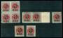 1904. 4/8 øre grå/rød x 9 inkl. Hage på 4-tal og omv. vm. AFA 1730,-