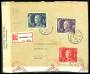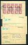 2. VERDENSKRIG. Planche med tre censurbreve med spor af den røde etiket, der indikerede, at brevene skulle til yderligere kontrol (censur). Det ene brev har stemplet "Innehåller ostämpade frimärken".