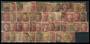 1855. 1 d. rosa. Planche med diverse i blandet kvalitet.