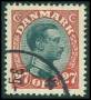 1918. 27 øre rød/sort med variant: Plet bag øjet, oxideret. AFA 1200,-