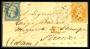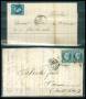 1853. Nepoléon III, 20 Centimes, blå og 40 Centimes, orange. Brev sendt fra PARIS 6.JANV.55 til Firenze i Toscana.
