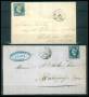1853. Nepoléon III, 25 Centimes, blå. Brev sendt fra LES TENES 9.MAI.54 til Chatellerauit. Annulleret med nummerstempel 3333 (petit chiffres). Transitstemplet PARIS A BORDEAUX 9.MAI.54 og ankomststemp...