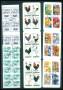 Planche med diverse ældre mærker, alle med fejl/defekter.