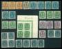 1926. 7/15 øre violet i marginal 25-blok inkl. varianter.