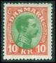 1928. 10 kr. rød/grøn. AFA 6000,-