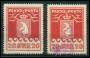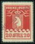 1915. 20 øre rød med 2 forskellige stp. Christianshaab.