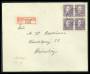 1942. 10 øre violet i 4-blok på R-brev fra Grønlands Styrelse, lodret fold.