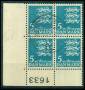 1946. 5 kr. blå i nedre marginalblok med variant.