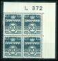 1974. 20 øre mørkblå i marginalblok L 372 med variant.
