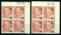 1955. 30/25 øre rød i marginalblokke den ene med dobbelt/kraftigt overtryk i pos. 10.