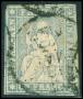 1855-57. 1 fr. grå med gul tråd. AFA 7.000,-