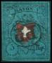 1850. 5 rp. blå/sort/rød med sort rammelinie, lille indklip i højre side. AFA 10000,-