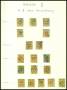 1850. 10 rp. gul/sort/rød x 18 opsat efter farver.