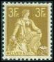 1907. 3 fr. olivgul/gul velcentreret. Attest Rellstab. AFA 5000,-