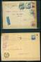 SPANSKE BORGERKRIG. Planche med tre breve og et postkort. Sendt til Lissabon, København og Borås, Sverige.
