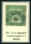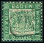 BADEN. 1862. 18 kr. grøn, Våbenskjold. En lille del af mærker i nord mangler.AFA 5.000,-