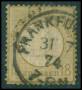 1872. 2 kr. gulorange, Lille brystskjold. AFA 1.900,-