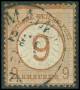 1872. 9 kr. rødbrun kort tk. AFA 3350,-